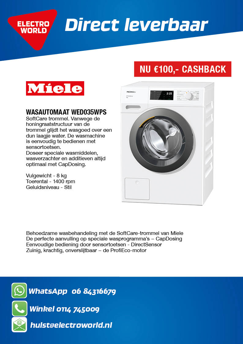 Miele WED035WPS  wasautomaat 1169,-.